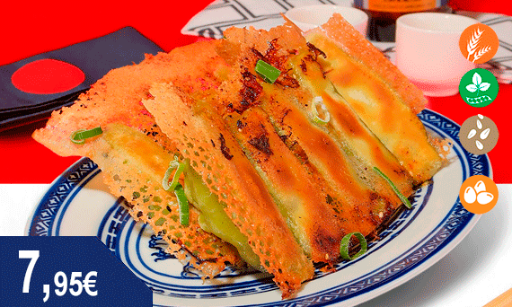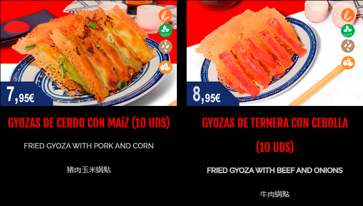 Ternera con cebolla . Cerdo con puerro . Pollo con repollo . Vegetales mixtos . Cerdo con cebollín